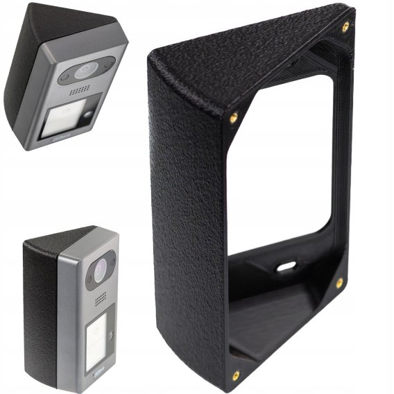 Wideomofon oraz daszek nie wchodzą w skład oferty. Przedmiotem dostawy jest drukowany uchwyt kątowy widoczny na pierwszym zdjęciu.