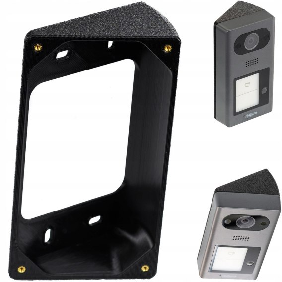 Wideomofon oraz daszek nie wchodzą w skład oferty. Przedmiotem dostawy jest drukowany uchwyt kątowy widoczny na pierwszym zdjęciu.