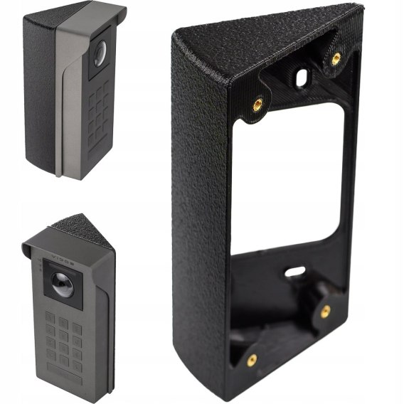 Wideomofon oraz daszek nie wchodzą w skład oferty. Przedmiotem dostawy jest drukowany uchwyt kątowy widoczny na pierwszym zdjęciu.