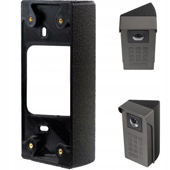 Wideomofon oraz daszek nie wchodzą w skład oferty. Przedmiotem dostawy jest drukowany uchwyt kątowy widoczny na pierwszym zdjęciu.