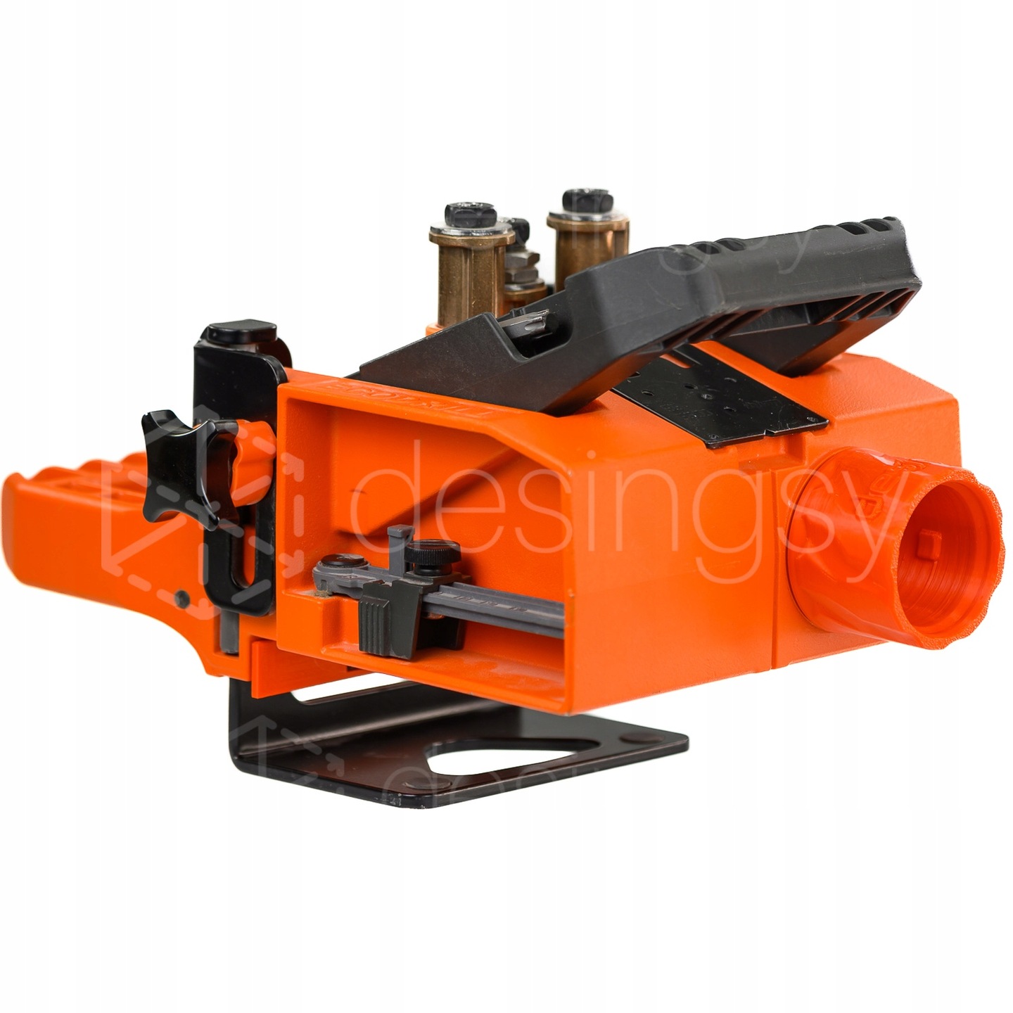 - Nasadkę powiększającą stopę dociskową / zderzak, która zwiększa powierzchnię podparcia Ecodrilla. Dzięki temu urządzenie mniej "buja się" na boki i pracuje znacznie stabilniej.