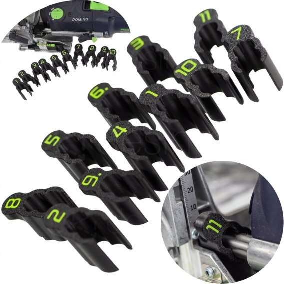 Blokady głębokości frezowania do Domino DF500 - zestaw 11 dystansów 1-11 mm
